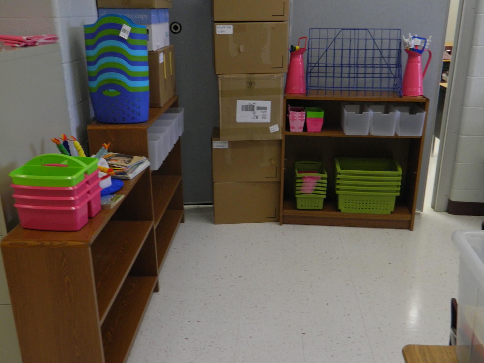 My FREE pile. Most of this stuff belongs to the school so I cant throw it away. I either have to convince a teacher to take it or store it in my room. If you remember my table drama from last year you'll be happy to find out that I got rid of my last extra table today! YAY!